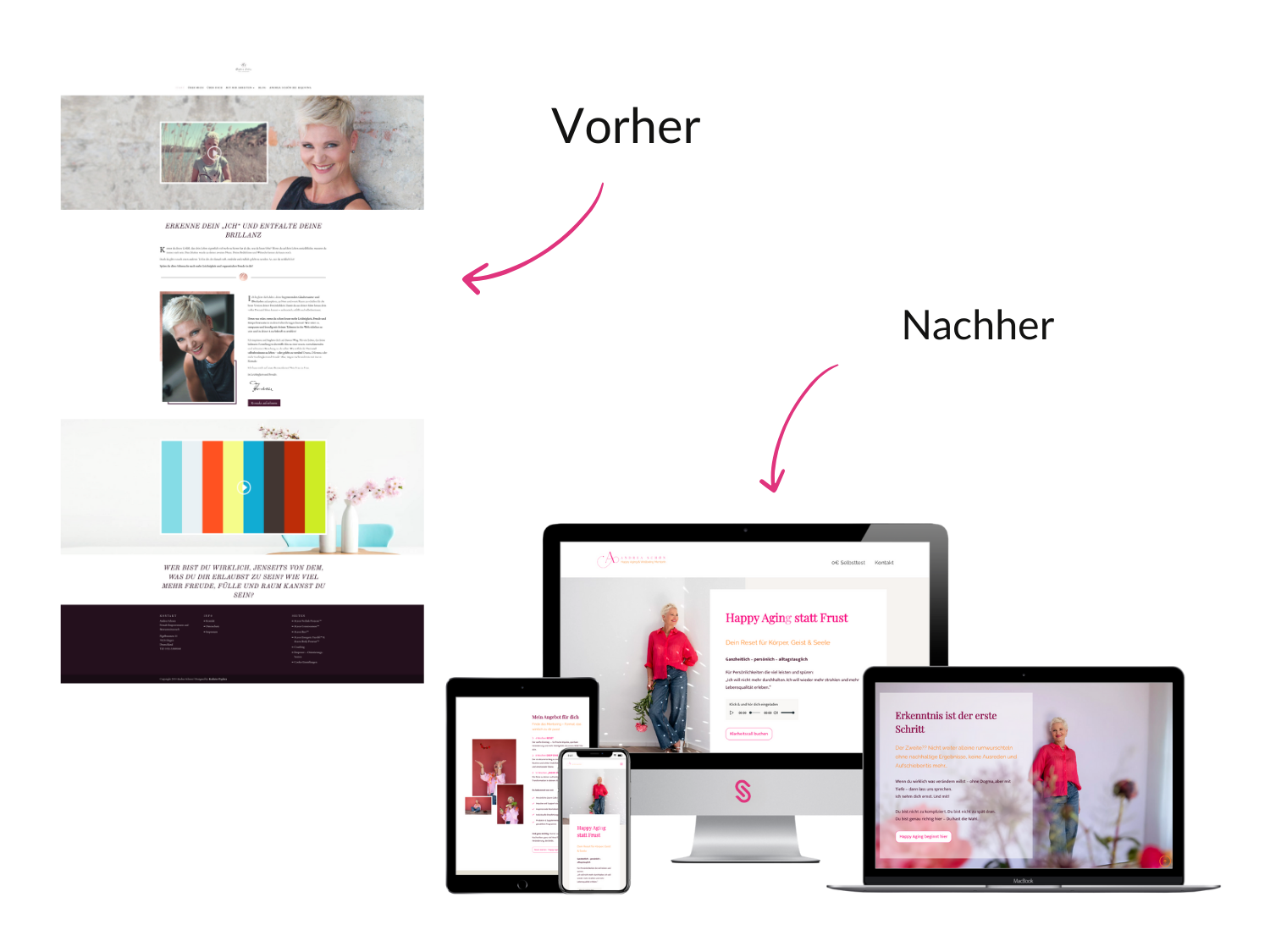 Das Ergebnis ist eine Website, die nicht nur gut aussieht, sondern Andrea authentisch repräsentiert und sie professionell sichtbar macht.
